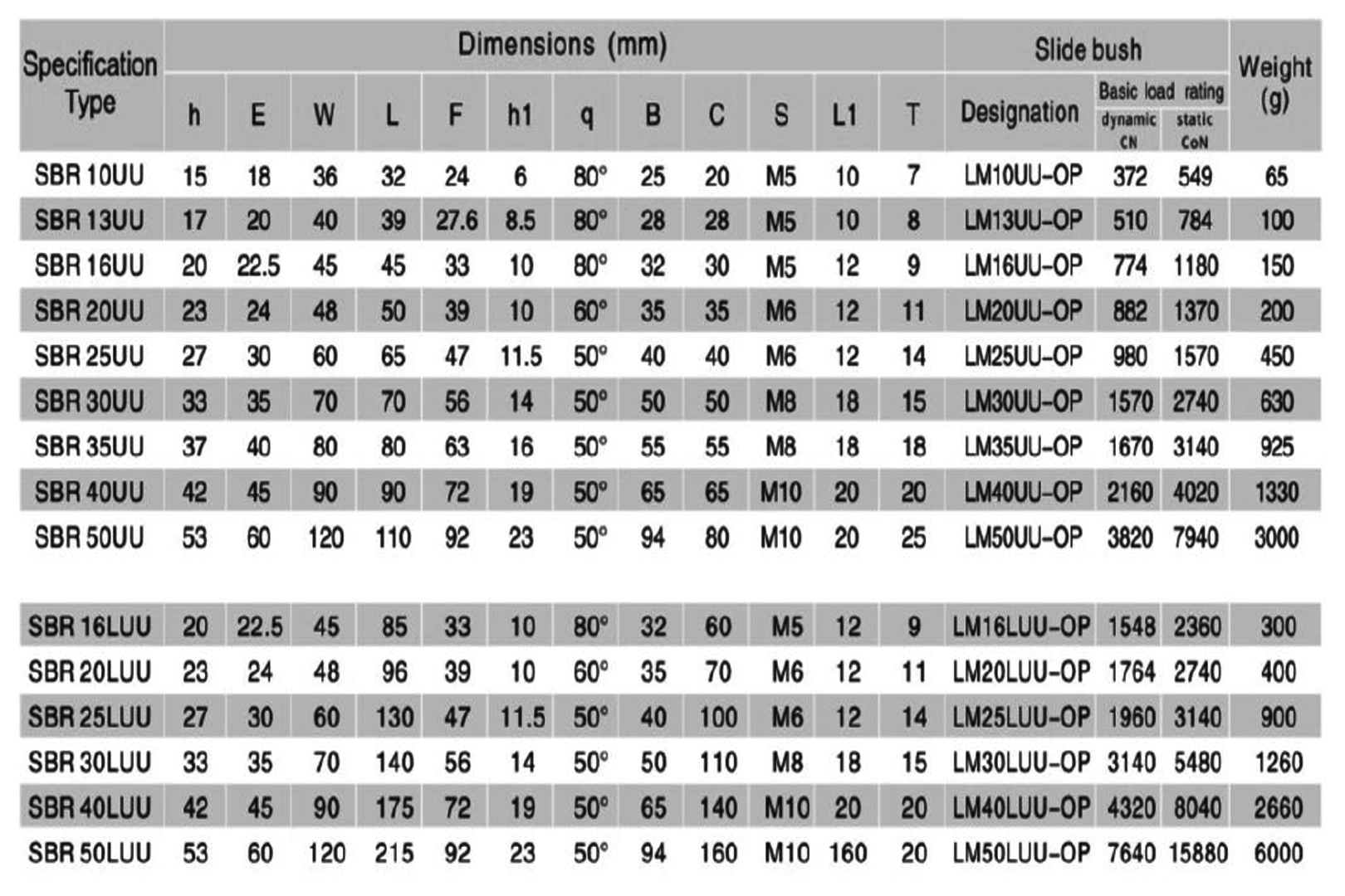 Aluminum Sliding Unit SBR...UU SBR...LUU